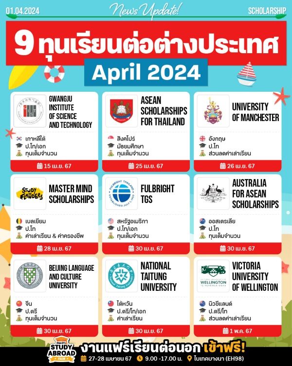 รวมทุนเรียนต่อนอก เมษายน 2024