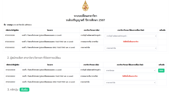 - สามารถทำได้ภายใต้กลุ่มวิชาที่ใช้ในคัดเลือกที่ผู้สมัครเคยเลือกไว้เท่านั้น