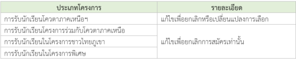 โครงการที่สามารถเปลี่ยนแปลงสาขาวิชาได้ มี 3 โครงการ คือ