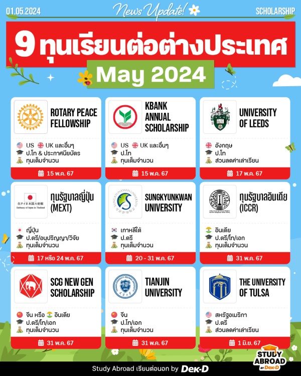 รวมทุนเรียนต่อนอก พฤษภาคม 2024