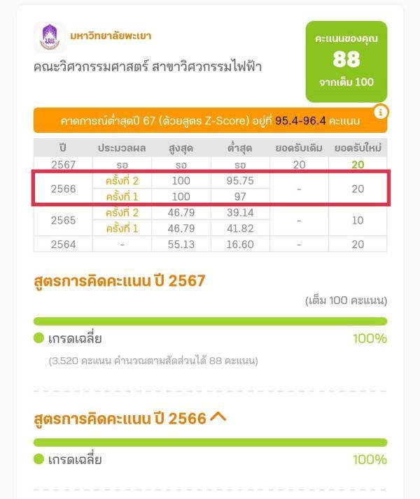 จากตัวอย่างคณะนี้ เมื่อปี 66 รับ 20 ที่นั่ง โดยใช้ GPAX 100% (เหมือนเกณฑ์ปีนี้)