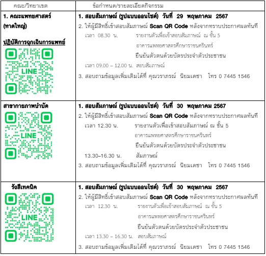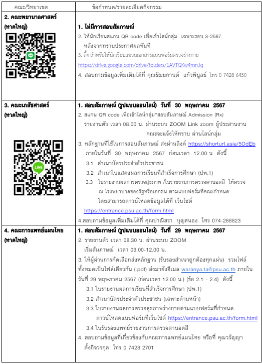 - กำหนดการสอบสัมภาษณ์ ม.สงขลานครินทร์ คลิก