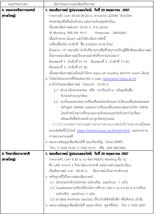 ม.สงขลานครินทร์ สัมภาษณ์ (บางคณะ) 29-30 พ.ค.นี้