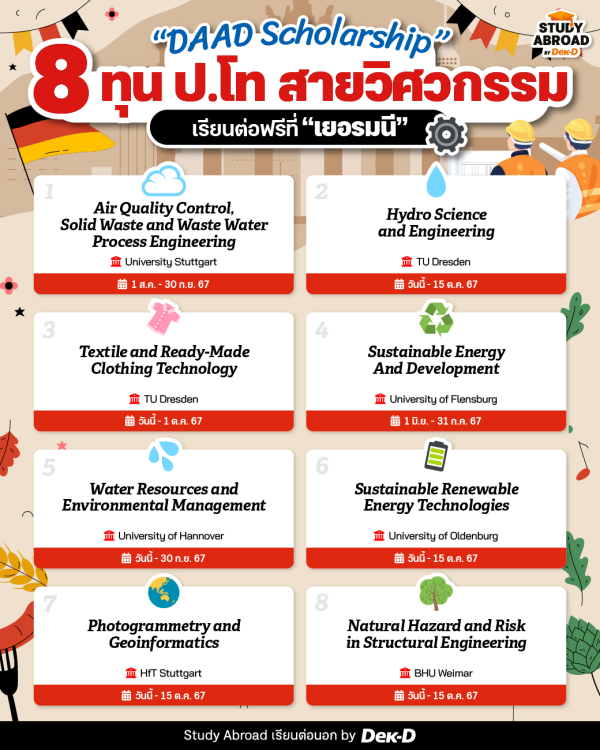 ตามไปเช็กกันต่อได้เลยที่ "โปรแกรมค้นหาทุนเรียนต่อนอก by Dek-D"