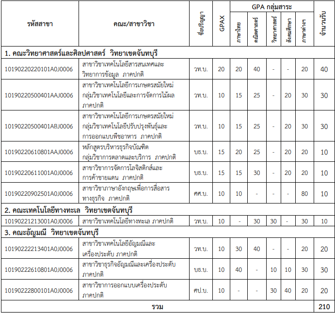 - ผู้สมัครคณะเทคโนโลยีการเกษตร จะต้องมี GPAX>2.00