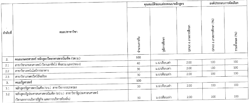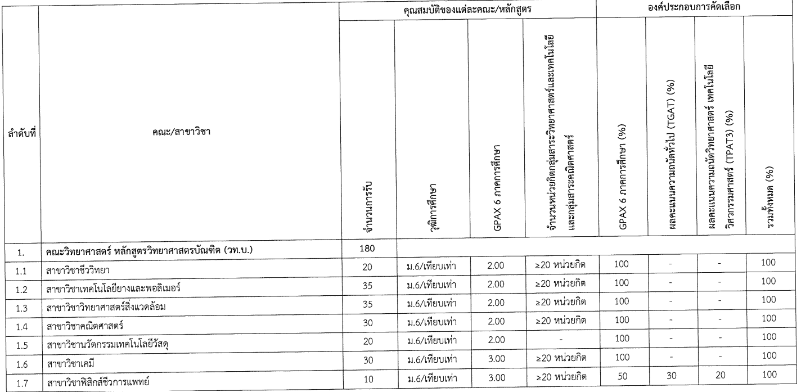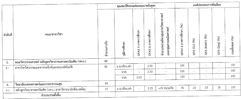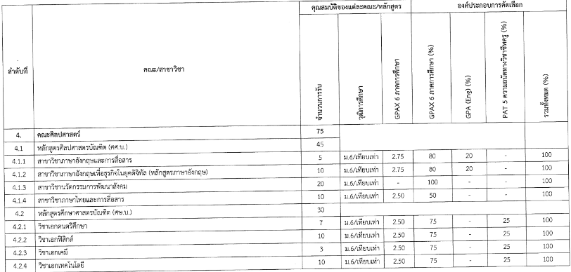 คณะที่เปิดรับสมัครและเกณฑ์คัดเลือก