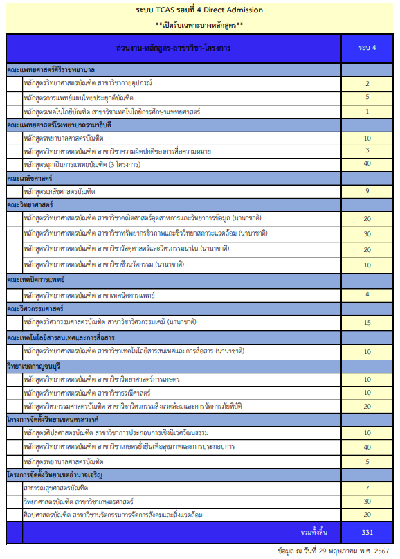 TCAS67 รอบ 4 : มหาวิทยาลัยมหิดล รับ 331 ที่นั่ง