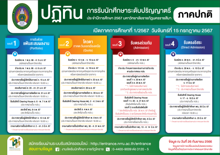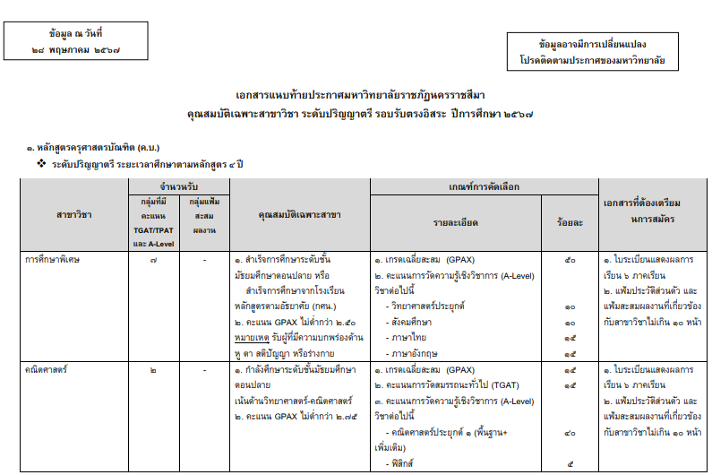 TCAS67 รอบ 4 : มรภ.นครราชสีมา (หลักสูตร 4 ปี/5 ปี)