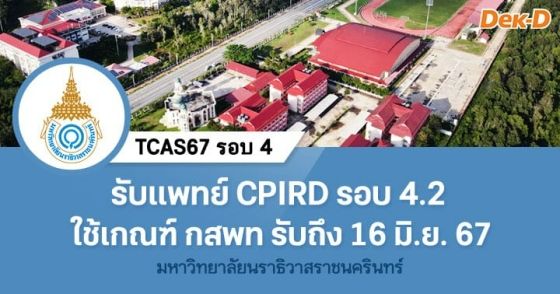 สวัสดีค่ะน้องๆ ล่าสุด มหาวิทยาลัยนราธิวาสราชนครินทร์ ยังเปิดรับสมัคร TCAS รอบ 4 รับตรงอิสระ เพิ่มเติมอีก 1 คณะ ได้แก่ คณะแพทยศาสตร์ โดยจะเปิดรับในโครงการผลิตแพทย์เพิ่มเพื่อชาวชนบท หรือแพทย์ CPIRD ระหว่างวันที่ 14 - 16 มิถุนายน 2567