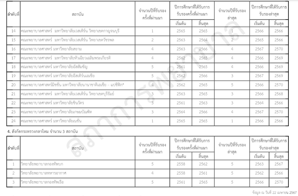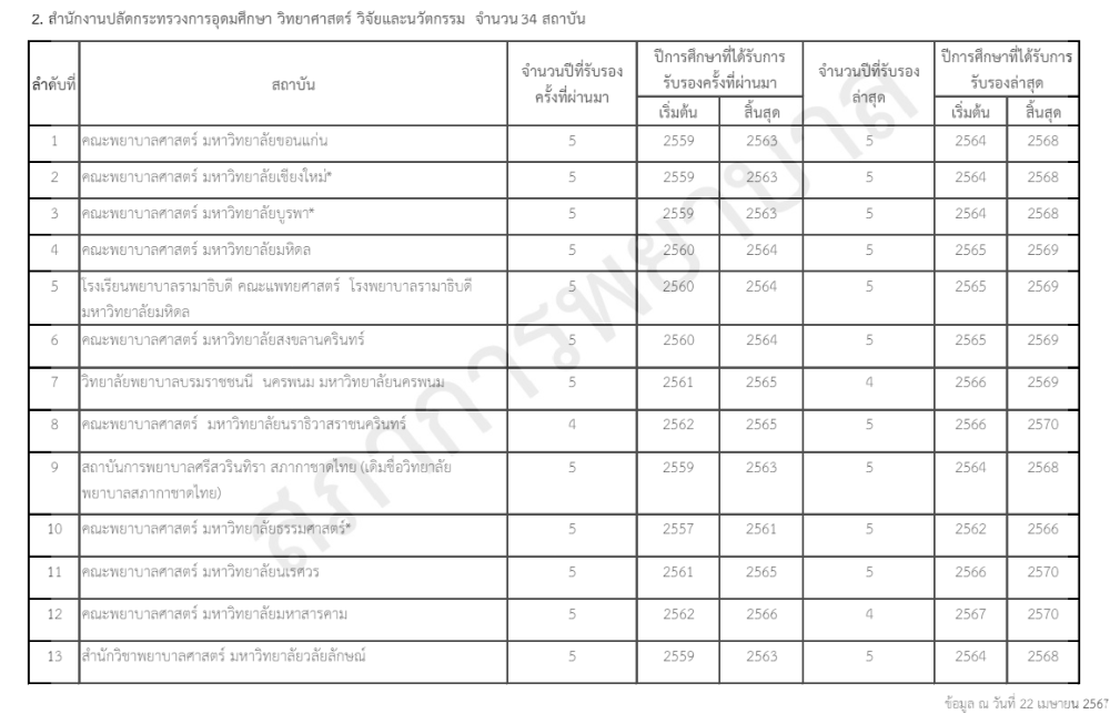 ส่วนรายหลักสูตรพยาบาลศาสตรบัณฑิต ที่ได้รับการรับรอง สภาพยาบาลก็ได้แบ่งตามประเภทของมหาวิทยาลัย พร้อมทั้งอัปเดตให้ว่าหลักสูตรใด ได้รับการรับรองในปีใดด้วย เช็กได้ที่นี่เลย คลิก