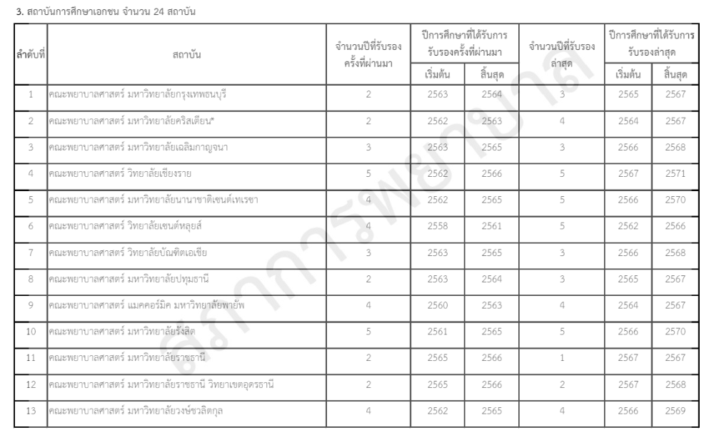 3. สถาบันที่ขอเปิดดำเนินการใหม่ กรณีนี้คือ สถาบันที่เพิ่งเปิดสอนคณะพยาบาล