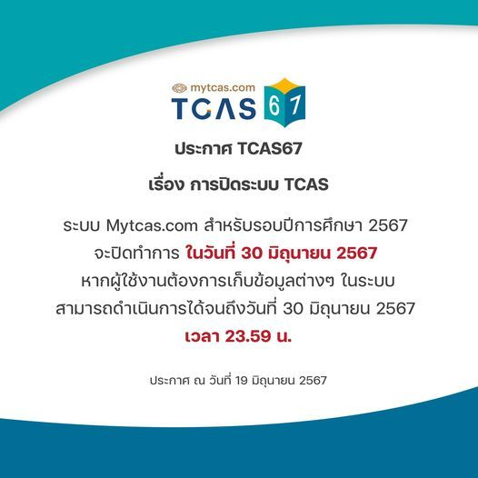 30 มิ.ย.นี้ ทปอ.จะปิดระบบ TCAS67 ใครใช้ใบคะแนน TGAT/TPAT A-Level เข้าไปโหลดเลย!
