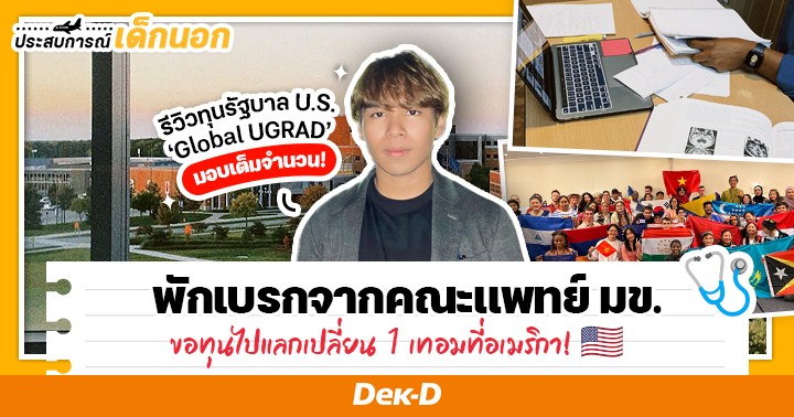 สวัสดีค่ะชาว Dek-D น้องๆ ป.ตรี ที่ใฝ่ฝันอยากเป็นเด็กแลกเปลี่ยนที่อเมริกา วันนี้เรามีรีวิวประสบการณ์ส่งตรงจาก "พี่ตูน-ปัณณวิชญ์" นักศึกษาแพทย์ ม.ขอนแก่น ที่ได้โครงการทุนเต็มจำนวน 'Global UGRAD' จากกระทรวงการต่างประเทศสหรัฐฯ ไปแลกเปลี่ยนที่ Grand Valley State University เป็นเวลา 1 เทอมเต็มๆ