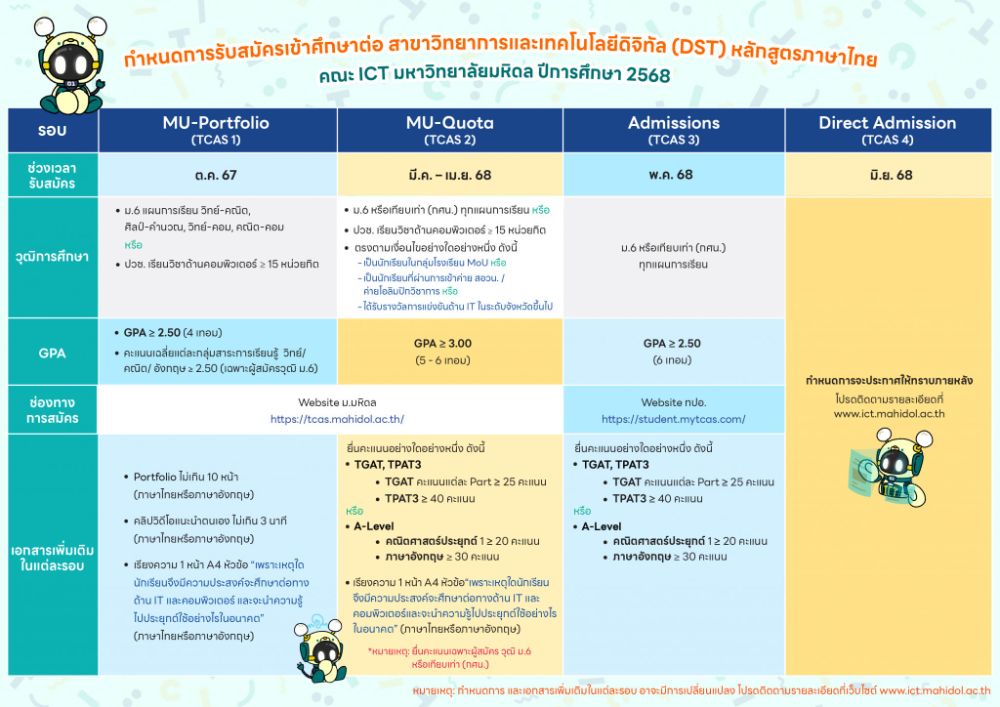 มาแล้ว! กำหนดการและเกณฑ์คัดเลือก ICT ม.มหิดล 68 เริ่ม ก.ย.นี้