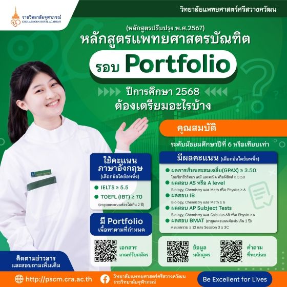 - เกณฑ์รับสมัครหลักสูตรแพทยศาสตรบัณฑิต ราชวิทยาลัยจุฬาภรณ์ คลิก