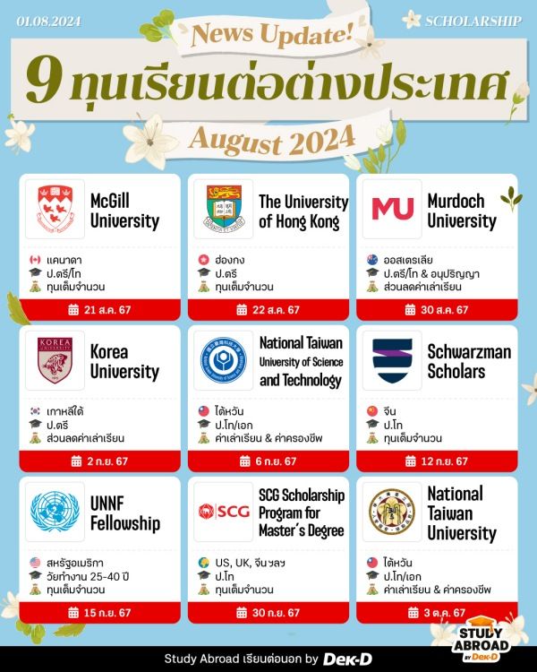 รวมทุนเรียนต่อนอก สิงหาคม 2024