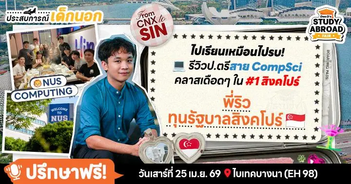 Note: เตรียมพบ "พี่ริว" และอีก 20+ รุ่นพี่นักเรียนทุนดีกรี Top U ทั่วโลก ที่ให้เกียรติมาประจำบูทใหญ่ในงาน Dek-D’s Study Abroad Fair เพื่อแชร์อินไซต์และให้คำปรึกษาแบบ 1:1 โดยไม่มีค่าใช้จ่าย ในวันเสาร์ที่ 25 และอาทิตย์ที่ 26 เมษายน 2026 ที่ BITEC Bangna (EH98) จัดร่วมกับงาน Dek-D’s TCAS Fair // ไม่ต้องลงทะเบียนล่วงหน้านะคะ เล็งคิวรุ่นพี่ให้ถูกวันแล้ว Walk-in ได้เลย (พี่ๆ ใจดีมากกก)