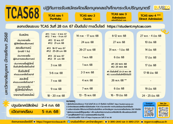 เช็กเลย! ปฏิทิน TCAS68 ม.บูรพา เปิดรับทั้งหมด 4 รอบ