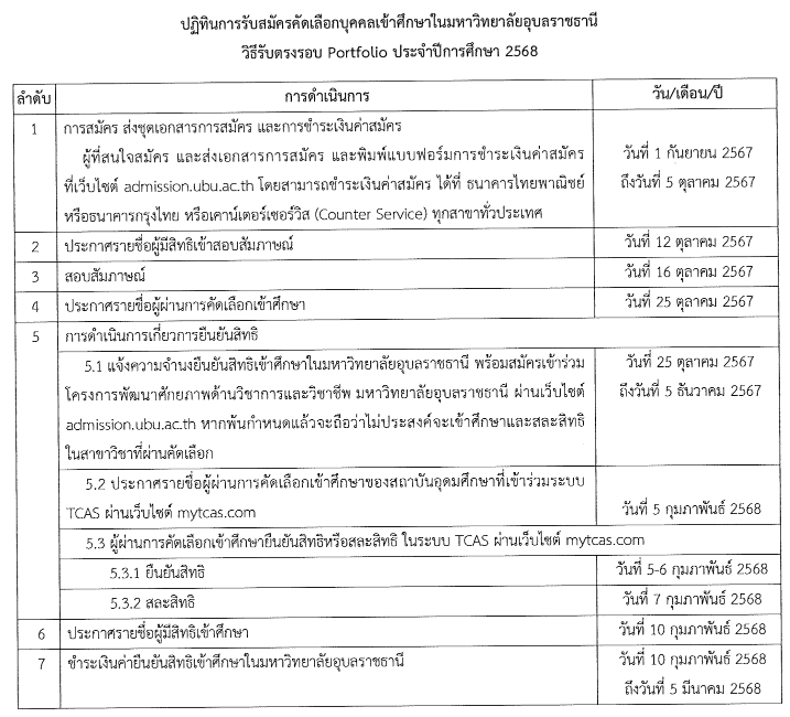 TCAS68 รอบ 1 : รอบ Portfolio ม.อุบลราชธานี