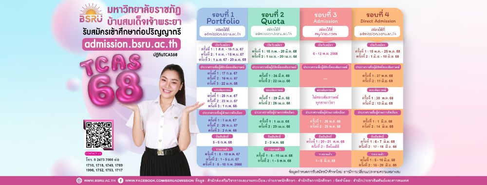จดไว้เลย! ปฏิทิน TCAS68 มหาวิทยาลัยราชภัฏบ้านสมเด็จเจ้าพระยา รวมรับ 8 รอบ