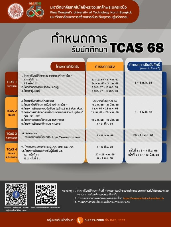 มาแล้ว! ปฏิทิน TCAS68 ม.เทคโนโลยีพระจอมเกล้าพระนครเหนือ