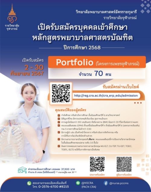 TCAS68 รอบ 1 : โครงการเพชรจุฬาภรณ์ วิทยาลัยพยาบาลฯ ราชวิทยาลัยจุฬาภรณ์