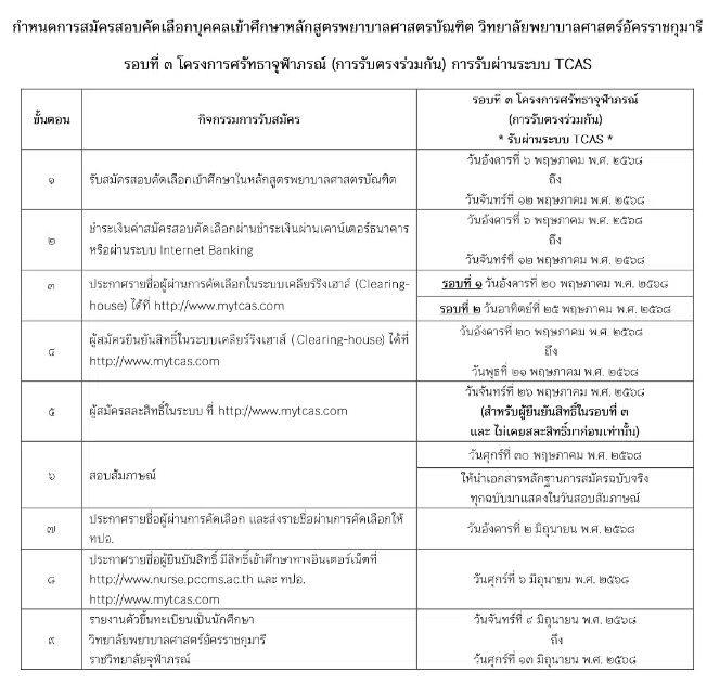 - ประกาศจากวิทยาลัยพยาบาลฯ ราชวิทยาลัยจุฬาภรณ์ คลิก