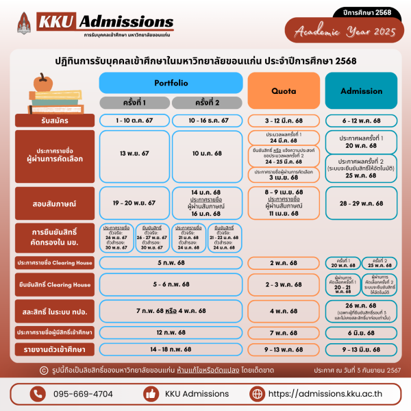 มาแล้ว! ปฏิทิน TCAS68 ม.ขอนแก่น รอบ Portfolio, Quota, Admission