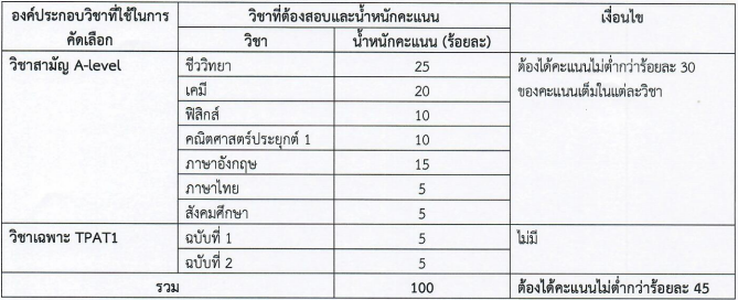 **สำหรับโครงการโอลิมปิกวิชาการ (ชีววิทยา) จะต้องได้คะแนนรวมไม่ต่ำกว่าร้อยละ 65