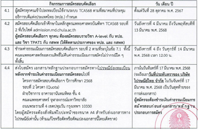 TCAS68 รอบ 2 : โควตาคณะแพทยศาสตร์ จุฬาฯ 3 โครงการ