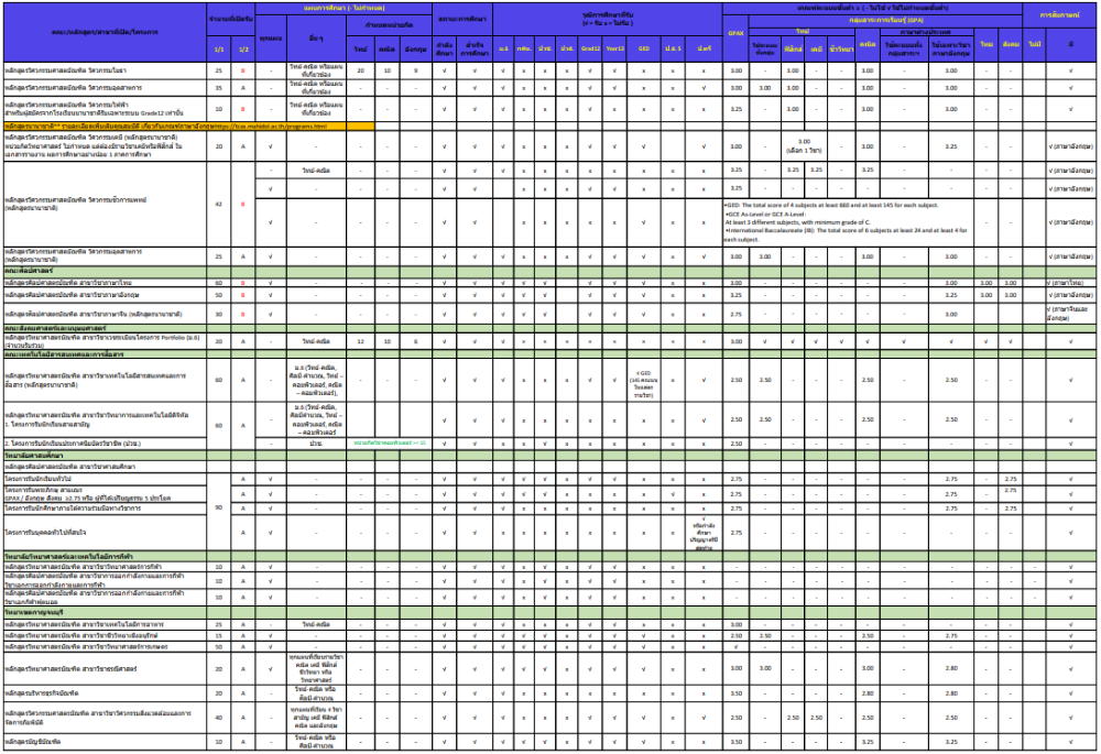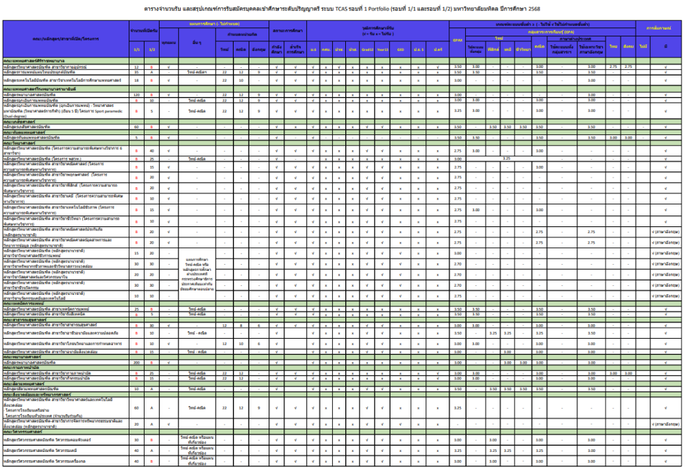 ตารางจำนวนรับ และเกณฑ์การรับสมัครรอบที่ 1/1 และรอบที่ 1/2 มหาวิทยาลัยมหิดล