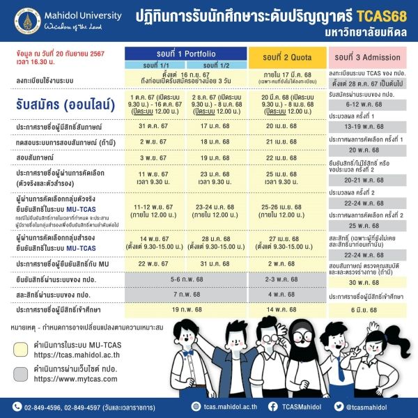 มาแล้ว! จำนวนรับและเกณฑ์คัดเลือก TCAS68 ม.มหิดล รอบ Portfolio