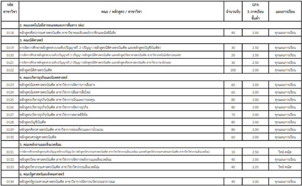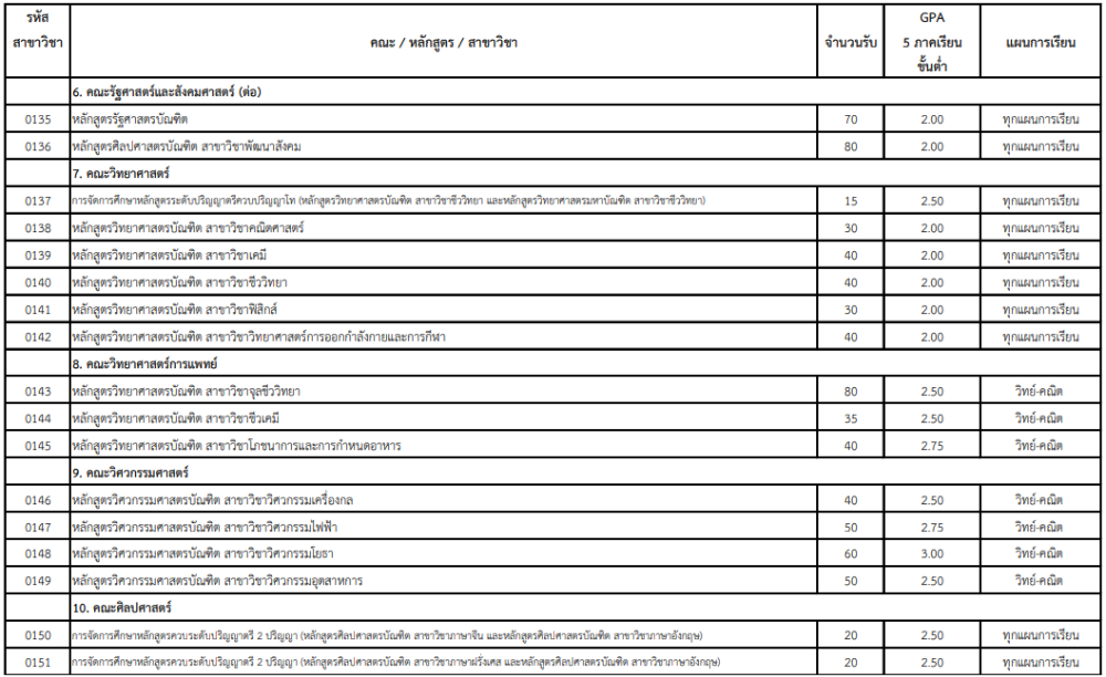 - ผู้ที่ผ่านการคัดเลือก หลักสูตร 2 ปริญญา หลักสูตรการศึกษาบัณฑิต สาขาวิชาการศึกษา (ครู) ต้องมีคะแนน TPAT5 ขั้นต่ำ 30% ในวันรายงานตัวขึ้นทะเบียนนักศึกษา