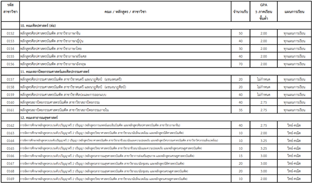 - GPAX 5 ภาคเรียน โดยเรียงลำดับจากมากไปหาน้อย