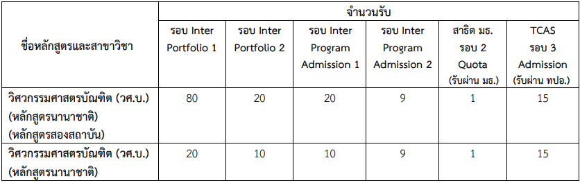 - รอบ Inter Program Admission 1 รับ 20 ที่นั่ง