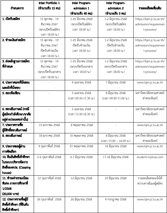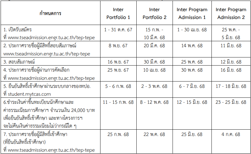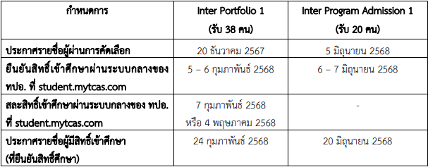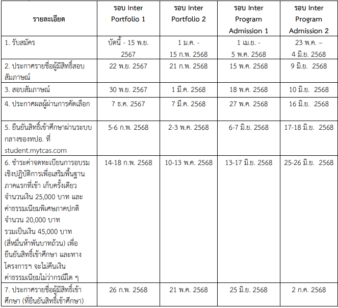 - รอบ Inter Program Admission 1 และ รอบ Inter Program Admission 2
