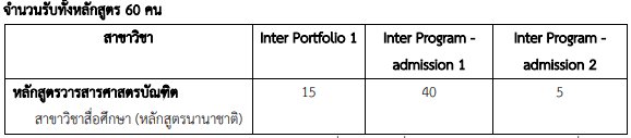 - รอบ Inter Portfolio 1 รับ 38 ที่นั่ง