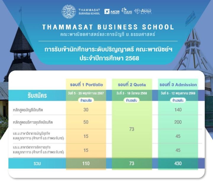 ข่าวดี! บัญชี+บริหาร ม.ธรรมศาสตร์ รับรอบ Portfolio ปีแรก ใช้คะแนน Forward (ใหม่!) หรือ SAT