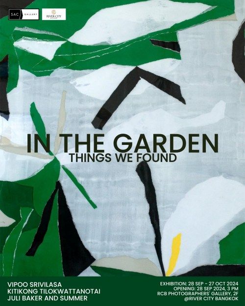 แวะมาพักสายตา และฮีลใจ กันที่ “IN THE GARDEN, Things We Found” นิทรรศการกลุ่ม โดย วิภู ศรีวิลาศ, กิติก้อง ติลกวัฒโนทัย และ จูลี่ เบเกอร์ แอนด์ ซัมเมอร์ กับผลงงานที่ได้รับแรงบันดาลใจจากความงามและสัจธรรมที่พวกเขาได้ค้นพบในพื้นที่สีเขียวของตัวเอง ไม่ว่าจะเป็นสวนจริง หรือสวนแห่งจินตนาการ นิทรรศการนี้ไม่เพียงแต่จะนำเสนอความงามของธรรมชาติและศิลปะที่ผสมผสานกันอย่างลงตัว แต่ยังเป็นการแสดงถึงความพยายามและความสุขที่เกิดจากการทำงานในสวน ซึ่งเป็นสถานที่ที่อาจจะให้เราสามารถค้นพบตัวตนและความสงบสุขได้