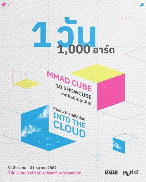 คนรักท้องฟ้าพลาดไม่ได้! นิทรรศการ “1 วัน 1,000 ภาพ : INTO THE CLOUD” ที่รวบรวมผลงานภาพถ่ายท้องฟ้าจากศิลปิน และบุคคลทั่วไปที่ผ่านการคัดเลือกในรูปแบบ Photo Installation ที่จะเปลี่ยนห้องสี่เหลี่ยมธรรมดาให้กลายเป็นท้องฟ้าหลากสี ผู้ชมจะได้พบกับภาพท้องฟ้าที่หลากหลาย ทั้งท้องฟ้าสีฟ้าสดใสปกคลุมด้วยเมฆขาว หรือท้องฟ้ายามเย็นที่กำลังเปลี่ยนสียามพระอาทิตย์ตกดิน ภาพถ่ายเหล่านี้จะทำให้เรารู้สึกเหมือนกำลังอยู่ในห้วงเวลานั้น ๆ