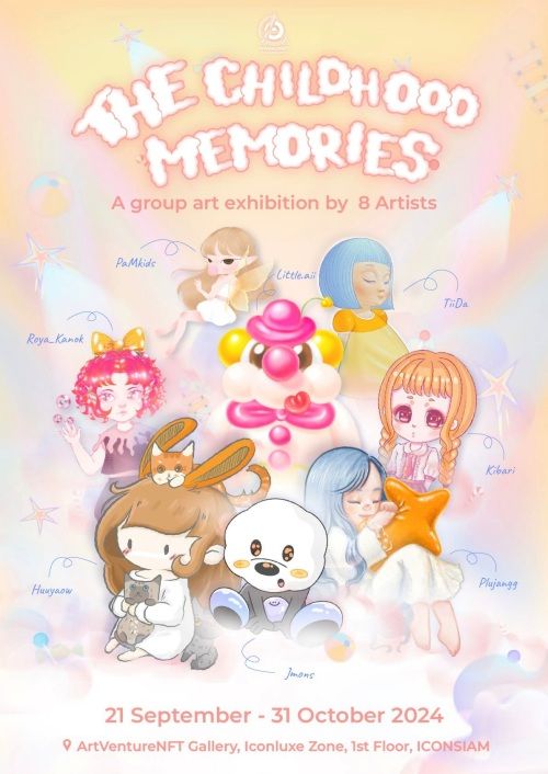แวะเติมพลังบวกไปกับ “The Childhood Memories” นิทรรศการศิลปะที่จัดแสดงแบบกลุ่ม จากศิลปินรุ่นใหม่ไฟแรงทั้ง 8 คน ได้แก่ Huuyaow, Jmons, PaMkids,Kibari, Roya_Kanok, TiiDa, Plujangg และ Little.aii ผ่านผลงานตัวละครสุดน่ารักที่ได้แรงบันดาลใจจากภาพความทรงจำ ความฝัน ความประทับใจ และจินตนาการในวัยเยาว์ ที่จะพาทุกคนนั่งไทม์แมชชีนย้อนเวลากลับไปสู่โลกความทรงจำในวัยเด็กที่เต็มไปด้วยความสุขอีกครั้ง
