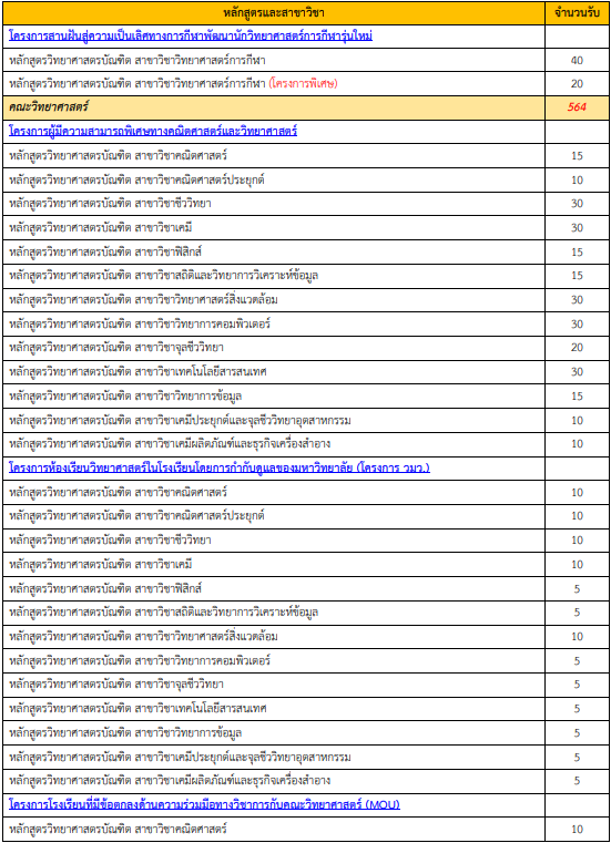 - เพิ่มเติม สาขาใหม่ สาขาเทคโนโลยีสื่อสร้างสรรค์ https://admission.su.ac.th/fileupload/new/2412020843.pdf