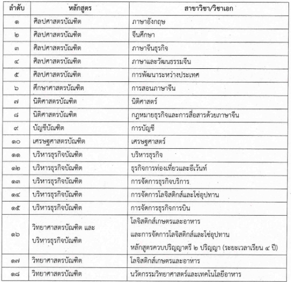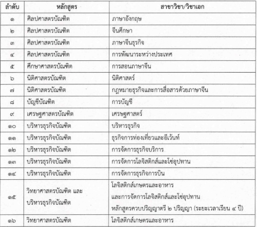 สาขาวิชาที่เปิดรับสมัคร