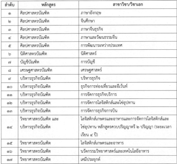 สาขาที่เปิดรับสมัคร