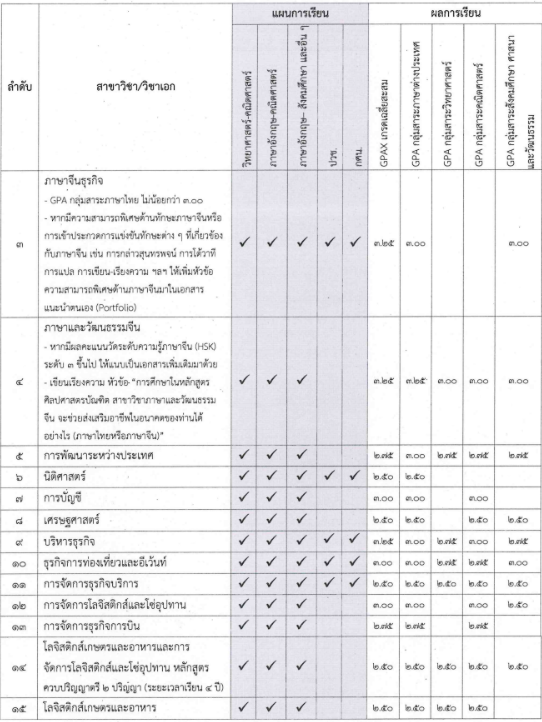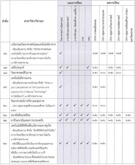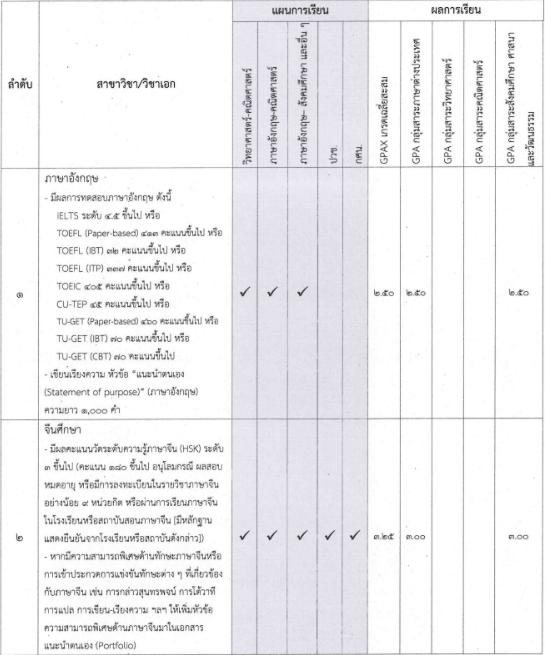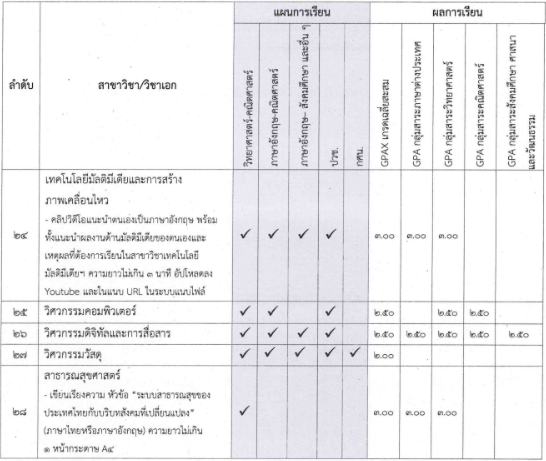 - มีแผนการเรียน/GPAX/คะแนนต่างๆ ตามที่สาขากำหนด
