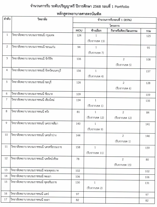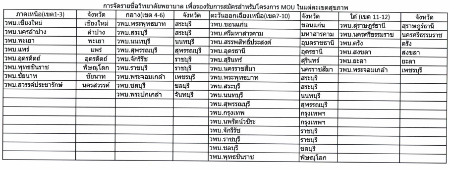 - 1.3 โครงการช้างเผือกสถาบันพระบรมราชชนก (ช้างเผือก สบช.) รับเขตสุขภาพละ 2 คน (พยาบาล 1 คน และสาธารณสุขศาสตร์และเวชศาสตร์ 1 คน)
