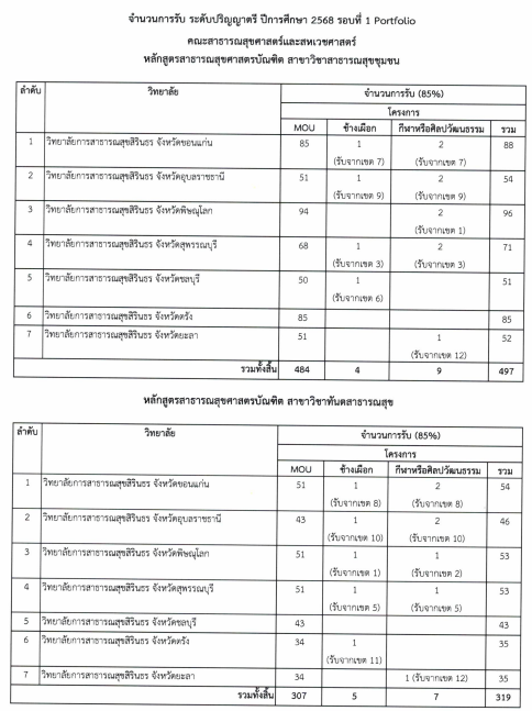 - สาธารณสุขศาสตรบัณฑิต สาขาวิชาสาธารณสุขชุมชน