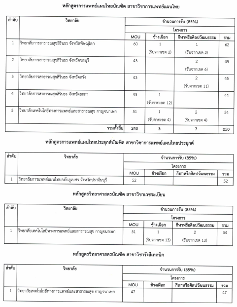 - การแพทย์แผนไทยบัณฑิต สาขาวิชาการแพทย์แผนไทย