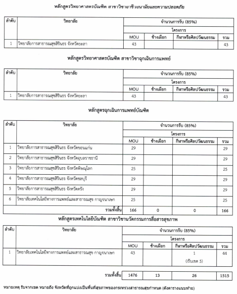 หลักสูตรวิทยาศาสตรบัณฑิต สาขาวิชาอาชีวอนามัยและความปลอดภัย / สาขาวิชาฉุกเฉินการแพทย์ / หลักสูตรฉุกเฉินการแพทยบัณฑิต / หลักสูตรการแพทย์แผนไทย สาขาวิชาการแพทย์แผนไทยประยุกต์