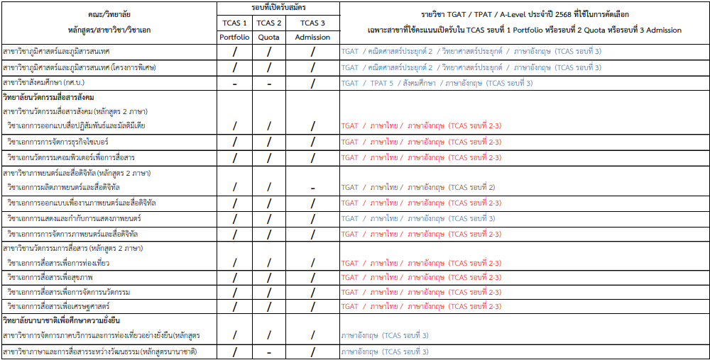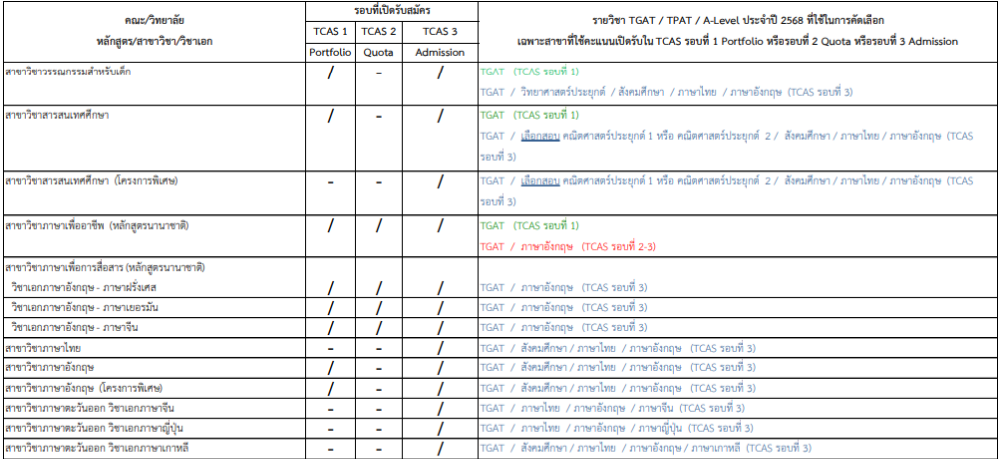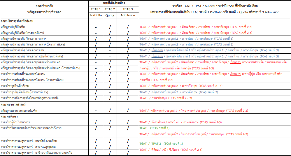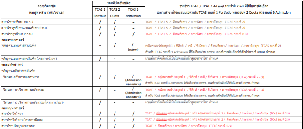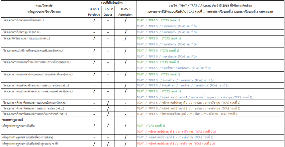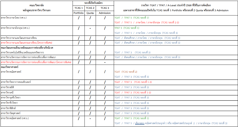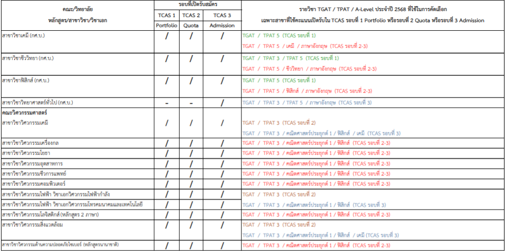 - คณะวิทยาศาสตร์ ทุกสาขาวิชา (ยกเว้นหลักสูตรการศึกษาบัณฑิต) ใช้ TGAT/TPAT3